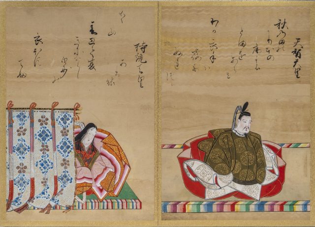 作者不詳《百人一首画帖 天智天皇/持統天皇》18世紀 嵯峨嵐山文華館蔵