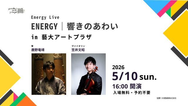 2026年5月10日(日)16時より、東京藝術大学美術学部構内にある「藝大アートプラザ」にてミニコンサート「ENERGY|響きのあわい」が開催されます。箏とヴァイオリンによる、力強く躍動感あふれる音楽を入場無料・予約不要で聴くことができます。