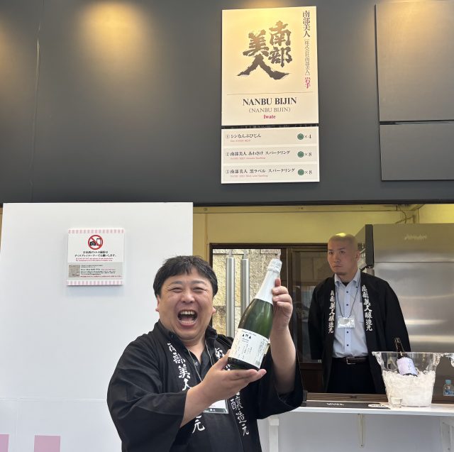 ブースのみならず、会場には酒瓶を持ったスタッフが回っており、どれを飲めばいいか迷ってしまう……その時、『南部美人』の 5代目蔵元・久慈浩介さんが海外メディアの取材を受けていました。国内外で今、人気なのは意欲作の『シンなんぶびじん』なのだとか。上品な香りと軽快な飲み口で、20〜30代を中心にファンを増やしていると話しています。