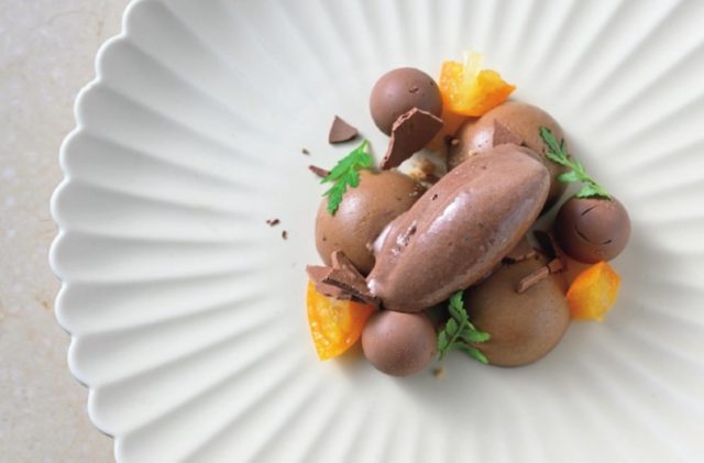 「少し辛く、痺れと独特な香りを持つ青花椒油(アオホアジャオユ)を用いて、チョコレートの自然な甘みと調和させ、鮮やかなコントラストを意識しました」という言葉の通り、新たな味覚を体感できる。