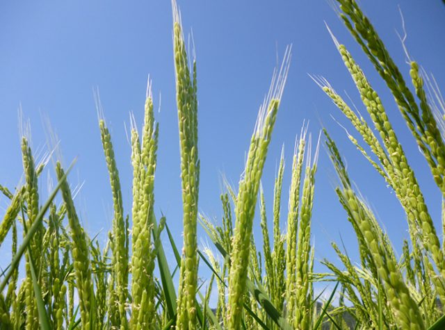 現代の酒米と比べて、雄町にはいくつかの特徴があります。まず「芒(のぎ)」と呼ばれる先端の尖った部分が付いており、これは比較的古い形質です。また「晩生(おくて)品種」として分類され、秋が深まった11月頃に収穫される場合もあります。