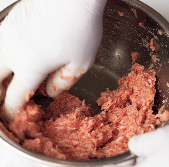 ※時間があれば、ラップをかけて冷蔵室で1~2時間冷やす。冷やすことで脂が締まり、肉汁が出にくくなる。