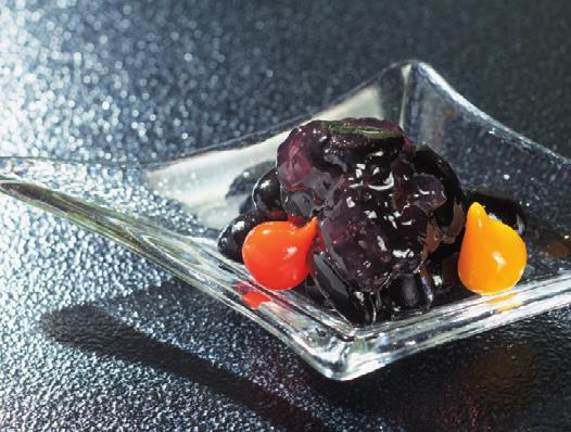 「サライのおせち」に新たに加わった「黒豆能登ワインジュレ」は、「ヤマソーヴィニヨン」のゼリーを使う。黒豆煮が洋風の味わいでより華やかに。