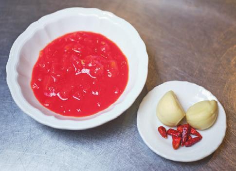 ガツンとした辛みがトマトの酸味を際立てる。瑞々しく軽やかなソースに仕上げるため、トマトを加えてから火を通すのは3分間。