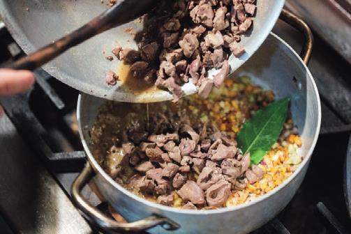 イタリア・ピエモンテで習った“鶏レバーのラグー”もそのひとつだ。ラグーは、豚や牛のひき肉が主流だが、鶏レバーでつくるとさらに現地の味に近づくという。