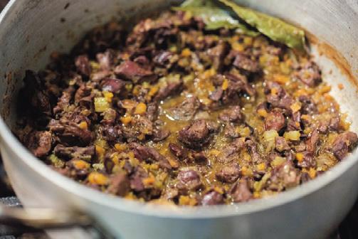 7.沸いたら中火にし、アクを取りながら約30分間煮込む。鶏レバーのラグーの完成!