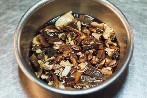 ポルチーニはヒタヒタの水で約30分間戻し、ザルでこす。戻し汁は取っておく。