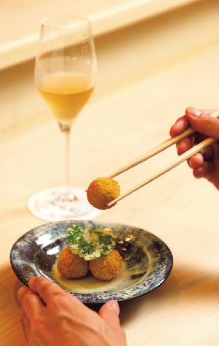 「ぎんなんコロッケ」1300円。銀杏をペースト状にして衣を付けてコロッケに。