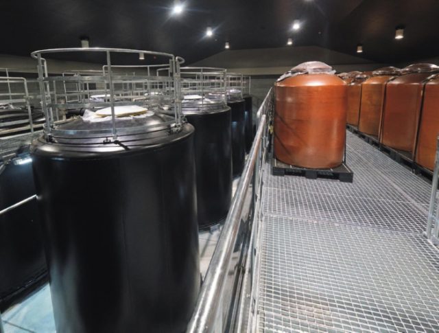 タンクの中のもろみからは、栗の甘さに焦がしバターの香ばしさを加えたような芳香が立ち上る。