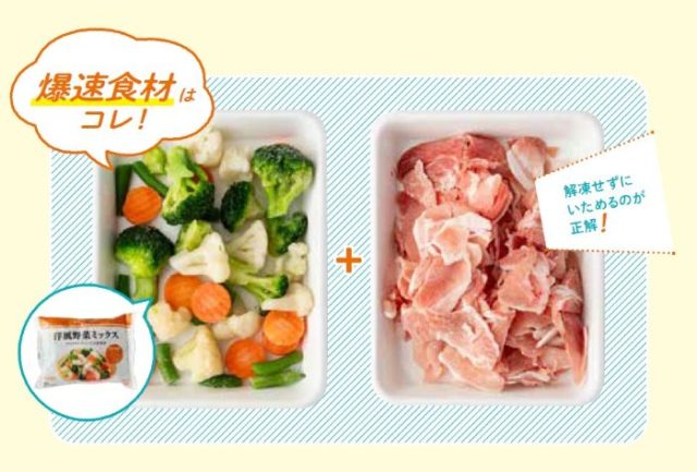 冷凍野菜は長くいためると食感が悪くなるので、あらかじめレンジ加熱していためる時間を短く。