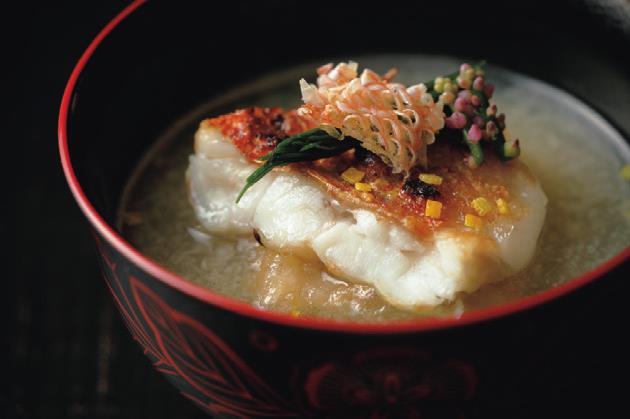 徳島県産の白甘鯛のお椀は、擂り下ろした蓮根を加えたみぞれ仕立てに。土鍋ご飯も、冬の煮物料理「鰤大根」を思わせる味にと独自性を出す。「ご飯にも合う唯一のワイン」と廣岡さんが推す奈良県のワイナリー「木谷ワイン」とのペアリングが、新旧の食文化の融合を感じさせてくれる。