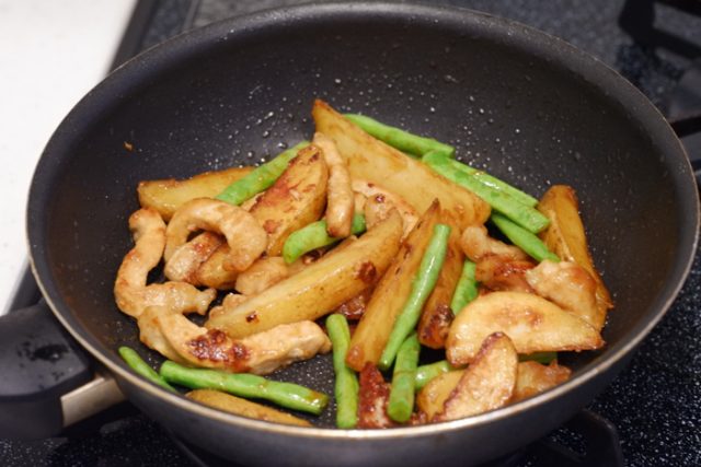 3.それぞれ焼き目がついたらいんげんを加えて軽く炒める。ペーパーで余分な油をふき取り、★の調味料で味付けする。