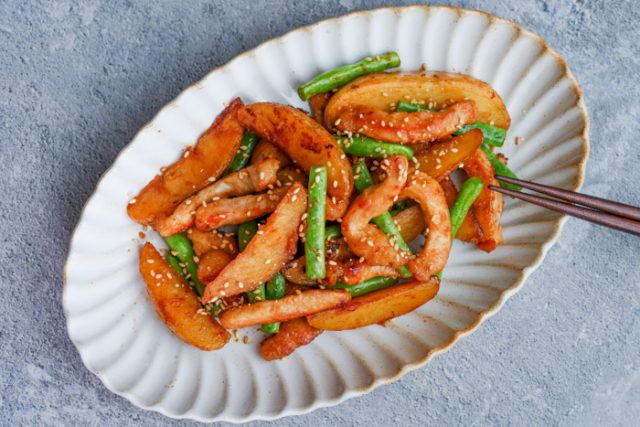 またじゃがいもにはビタミンCも含まれていて、いんげんと合わせて1日の推奨量のうち、1/3以上が補えます。