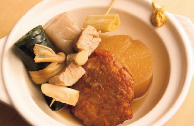 「最近はお客さんの好みに合わせて、少し薄味になってきました。手前にあるのが大根とこんにゃく。よく煮えたほうがおいしいので、明日のために仕込んでいます。ぐつぐつ煮立たせないで、じっくり味を染み込ませていきます」
