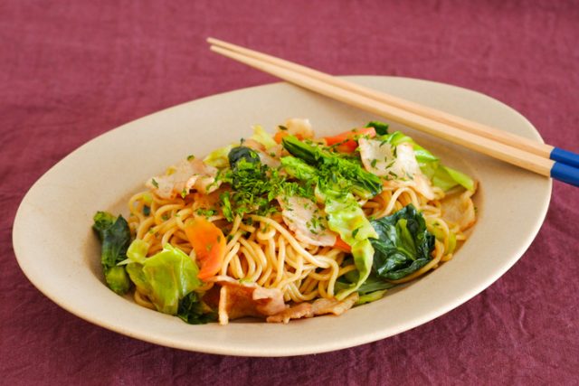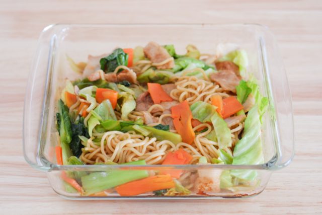 野菜から出た水分で粉末ソースも絡みやすく、再度加熱することで香ばしさもプラスできますよ。