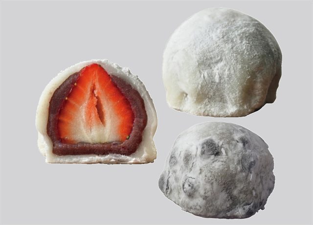 ややや、大福三者が揃う“令和の大福合戦”は今や絶頂、大盛り上がり。いざ、塩大福軍は控えめながらも中心に、豆大福軍は食感重視を謳い、フルーツ大福軍は香りを放ち……。