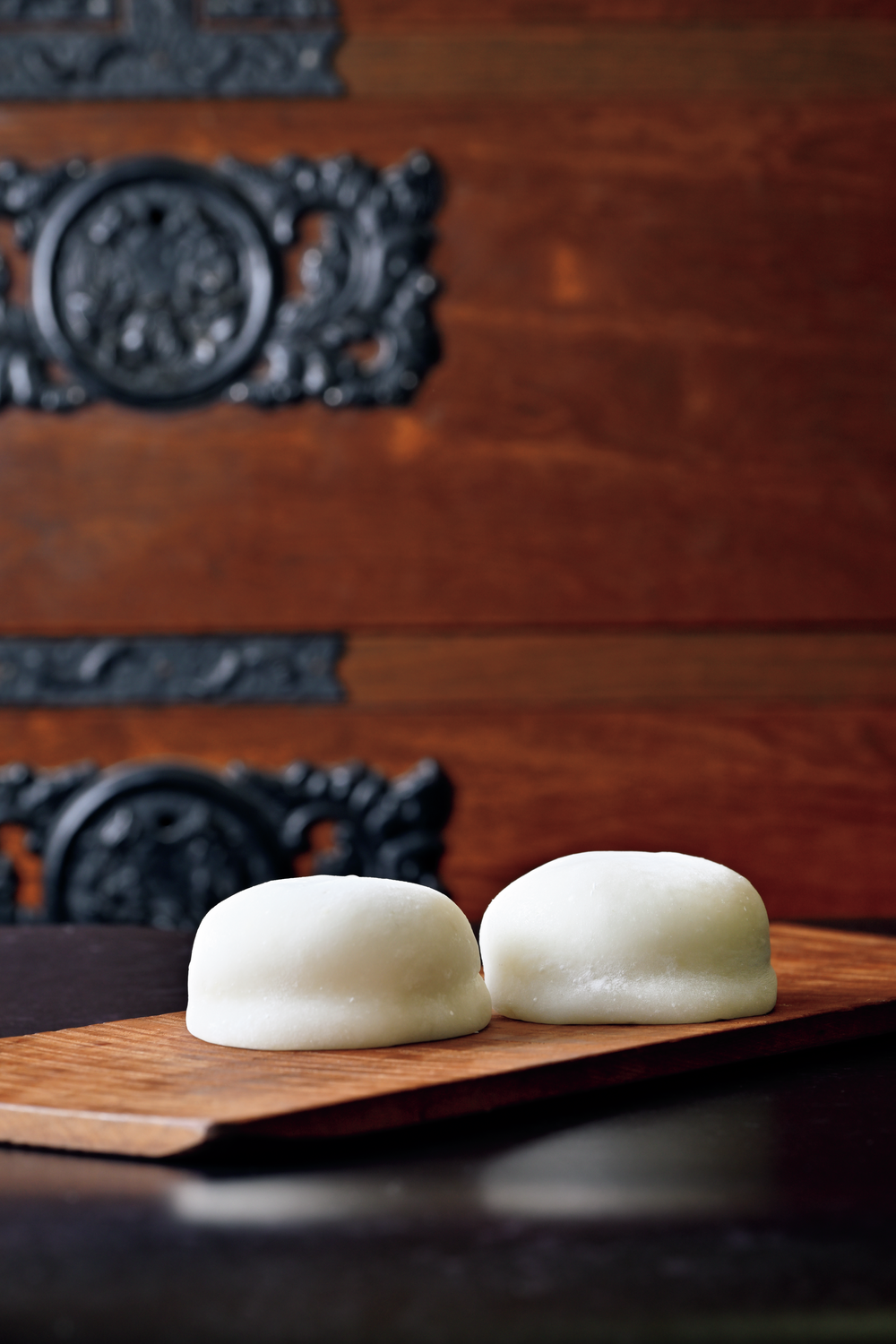 石臼と杵でつく、なめらかな餅で砂糖を使わぬ餡を包む