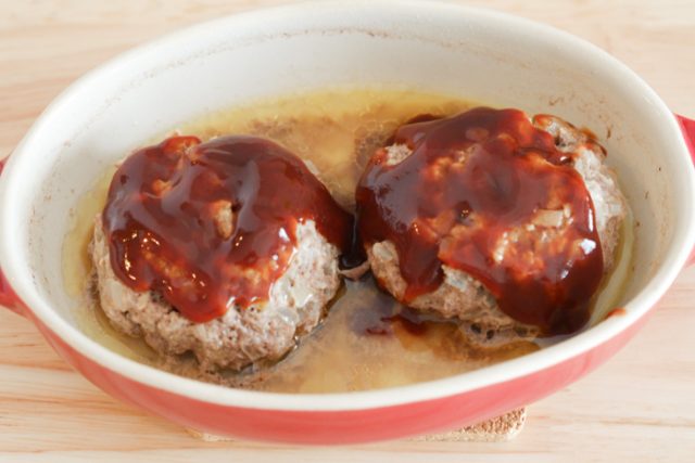 ハンバーグは電子レンジで作ることで、生焼けの心配なし。
