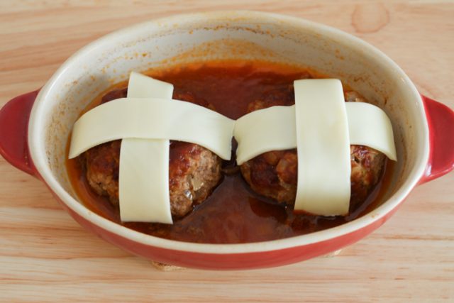 5.ハンバーグを一度取り出し、4のソースをかける。再度ラップをして、600Wの電子レンジで2分加熱する。
