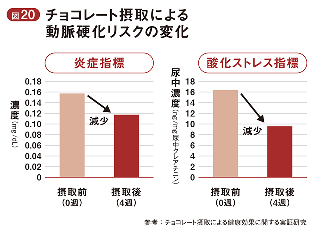 調査の結果、とくに数値が高かった上位4分の1の人たちで、チョコレート摂取後に有意に数値の低下が見られたというのです(図20参照)。