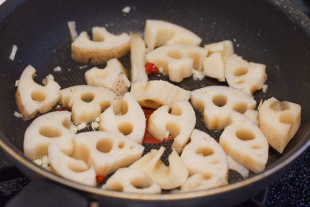 和食のイメージが強いれんこんですが、にんにくやオリーブオイルなどとも相性抜群。