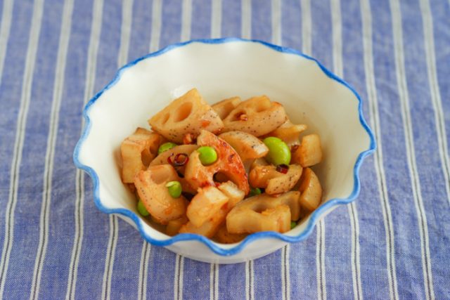 れんこんは先に蒸すことで、ホクホクとした食感が生きたおかずになります。