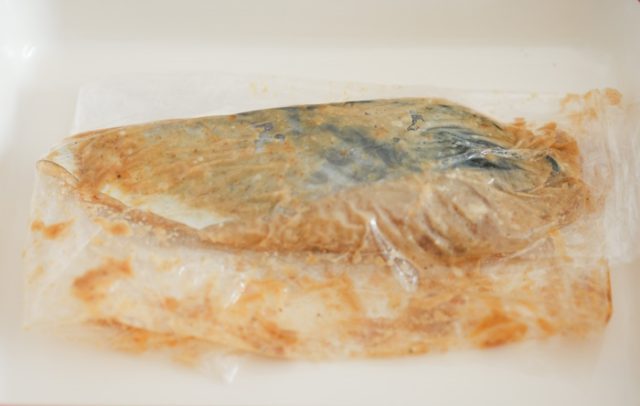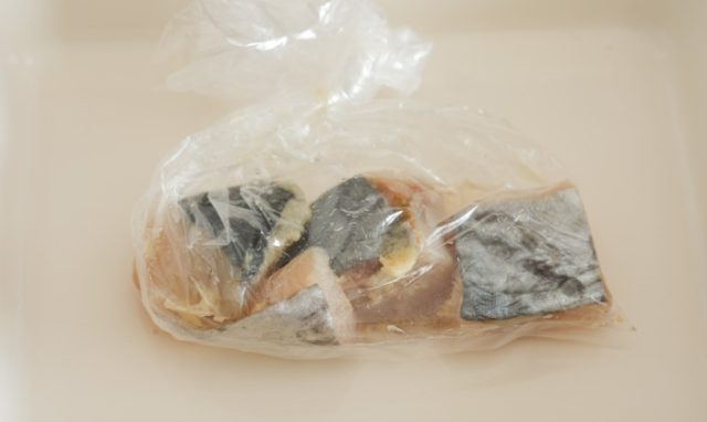 2.鰆は水気をペーパーでふき取り、ポリ袋に入れて1を揉み込み、冷蔵庫で半日以上漬ける。