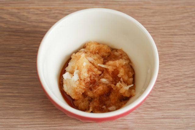 2.大根はすりおろして水気を切り、ポン酢しょうゆと混ぜる。
