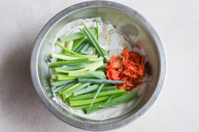 青ねぎとイカのキムチチヂミ