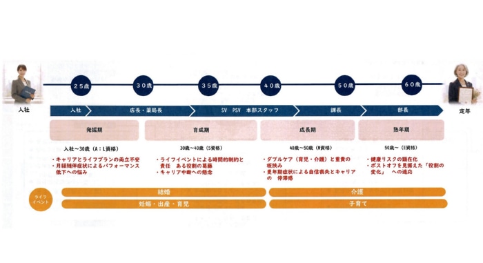 「マツキヨココカラ&カンパニー」は、働く女性の健康課題はキャリア継続と組織の持続的成長に直結する重要テーマだと捉え、新たに女性の健康支援プログラムをスタートした。グループ会社全従業員の7割以上を女性が占め、そのうち約半数が40代以上ということもあり、女性への健康支援は、より重要性が高いのだという。