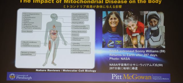 アフシンさんは「宇宙空間にいくと、飛行士たちは老化が加速します。それにはミトコンドリアが関わっており、その急激な老化の抑制に大塚製薬が開発したケンフェロールが働きかけるのではないかと、共同研究を行なっています」と語ります。