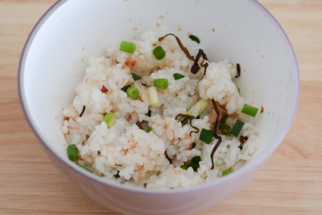 ごはんに混ぜる具材には、ほかにもいりごまや大葉、みょうがなどがよく合います。