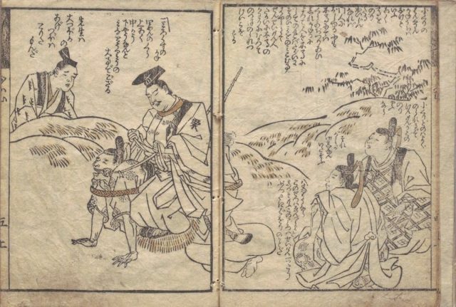 しかし、反対に世相の変化を風刺の材料とした出版人もいました。天明8年(1788)、蔦屋重三郎(つたや・じゅうざぶろう)のもとで朋誠堂喜三二(ほうせいどう・きさんじ)が『文武二道万石通(ぶんぶにどうまんごくとおし)』を出版。さらに翌寛政元年(1789)には、恋川春町の『鸚鵡返文武二道(おうむがえしぶんぶのふたみち)』が登場します。
