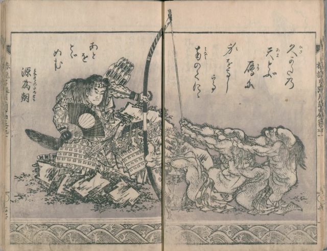 中でも、作家・曲亭馬琴(きょくてい・ばきん)との共作『新編水滸画伝』『椿説弓張月(ちんせつゆみはりづき)』は、荒唐無稽な読本の世界を繊細かつ迫力ある描写で表現し、北斎の名を一躍高めました。