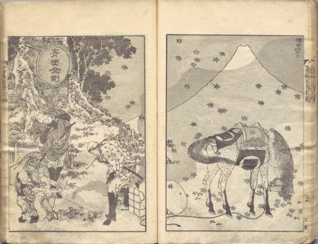 文化11年(1814)には絵手本『北斎漫画』の刊行を開始。以後、死後まで含め全15編が発行され、計3000点以上の図が収録されました。