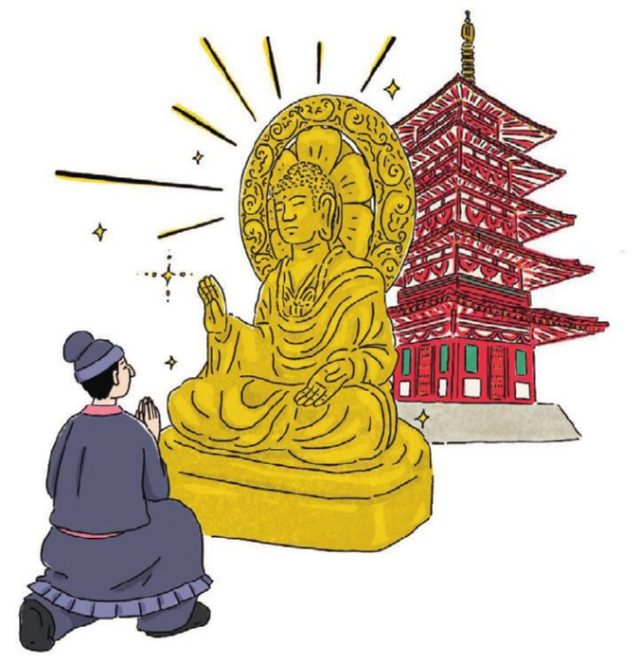 6世紀半ばに朝鮮の百済(くだら)より日本に仏教が伝来する。それは経典の伝来にとどまらず、最先端の文化が大陸からもたらされたことでもあった。天皇や豪族が仏教を信じるようになると、それまでに造られていた大きな古墳は姿を消し、新たな権威の象徴として大きな仏堂や高層建築の塔のある寺院が建てられていく。