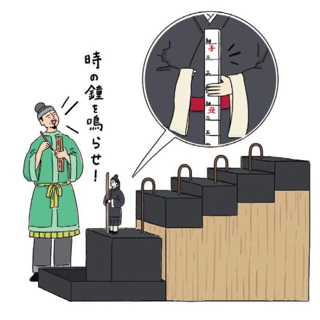 『日本書紀』には、大化の改新を行なった中大兄皇子が斉明6年(660)に漏刻を造り民に時を報せたとある。紀元前1500年頃より水時計が使われてきた古代中国では、皇帝が時間や暦を支配し秩序の規範としたので、中大兄皇子もそれに倣ったのではないかといわれる。それまでは太陽の位置で時間を計っていたが、天候に左右されるのが難点で、夜の時間はわからなかった。漏刻によって、飛鳥の人々はより正確な時を知るようになり、時間の概念が生まれていった。