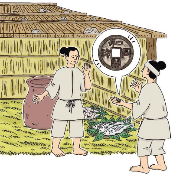 飛鳥時代末期、和銅元年(708)に日本で最初の官製の貨幣である「和同開珎(わどうかいちん)」が発行された。平城京造営のための資材の購入や労賃の支払いに使うことが目的だった。国家は貨幣を独占的に発行することで、米や布などの物々交換システムから、政府管理の貨幣経済への転換を図ったのだ。しかし、人びとは、安い材料で作った銅の貨幣をすんなりとは信用できず、和同開珎はすぐに広まらなかった。