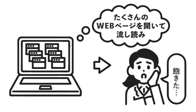 たくさんの WEBページを開きっぱなしにして1つずつ流し読みするものの、途中で飽きる。結局どの記事にどのような内容が書いてあったかわからず、情報収集だけで疲れてしまう。