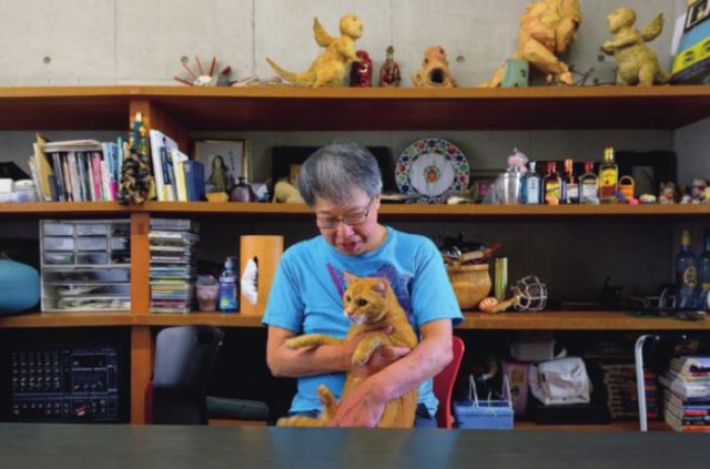 諸星さんのアトリエは、東京西部の静かな住宅街にある。1階に招き入れられると、茶色の毛並みの猫が出迎えてくれた。