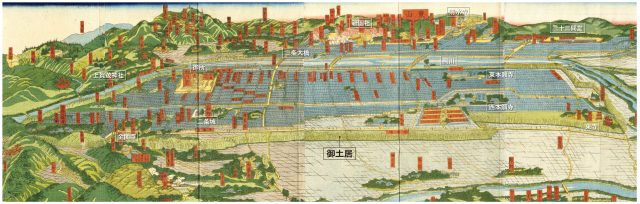「戦国時代に洛中といえば、平安京の東半分のうち、堀や塀で別々に囲まれた上京と下京という市街地に限られていました」