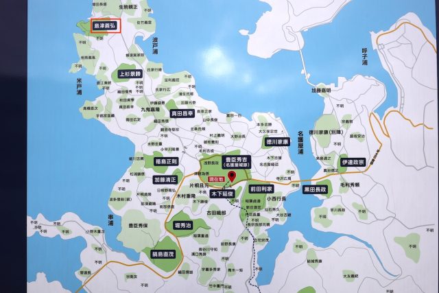 名護屋城跡の陣跡配置図でも米戸浦沿いに「島津義弘」の名が見える(赤枠で囲んだ部分)。