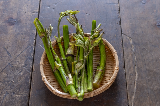 春から初夏にかけて旬を迎えるウコギ科の多年草で、若葉や茎は天ぷらや酢味噌和えなどにして美味しくいただけます。独特の香りとシャキシャキとした歯ごたえが特徴ですね。