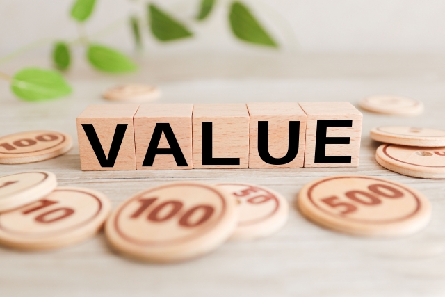 “value”は、対象そのものを見て評価する言葉です。その値段に対して、内容や質がどれくらい見合っているか。つまり、価格と中身のバランスを客観的に測ります。