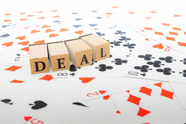 なにかを「取り扱う人」を意味する「ディーラー」という言葉や、映画やドラマの中で、交渉や約束がまとまったときに交わされる “Deal!” 。
