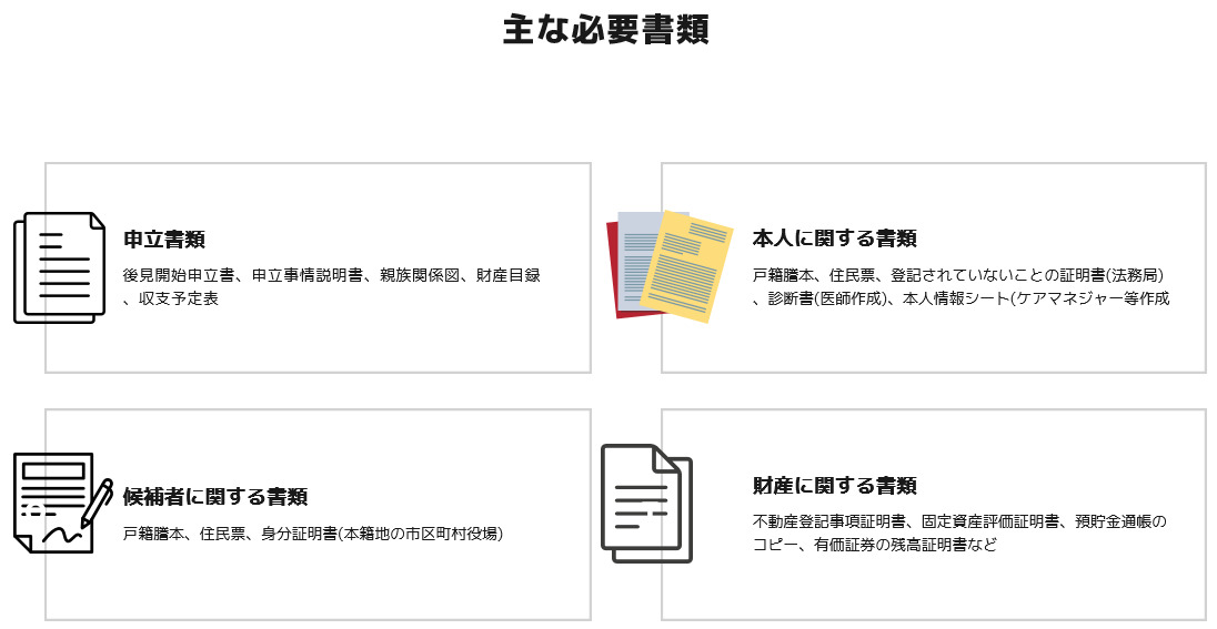 申立て手続きのための主な必要書類についても、確認しておきましょう。