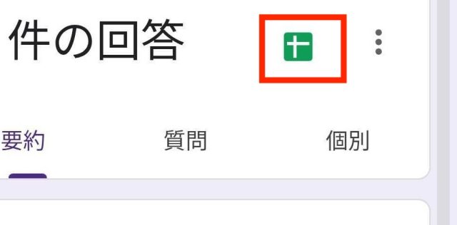 フォーム作成画面の上部にある「回答」タブをタップします。回答数が数字で表示され、その下に回答の内容がグラフで表示されます。