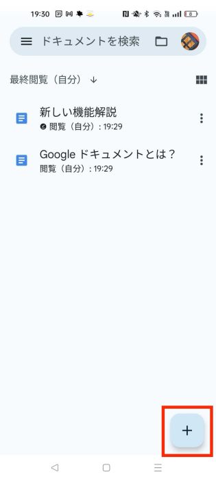 3.アプリを開き、画面下にある「+」ボタンを押すと、「新規ドキュメント ファイル」と表示されるので、そこから新しい文書を作成できます。