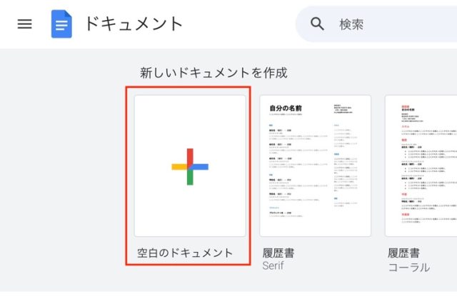 2.画面左上にある「空白のドキュメント」をクリックすると、新しい文書が作成されます。