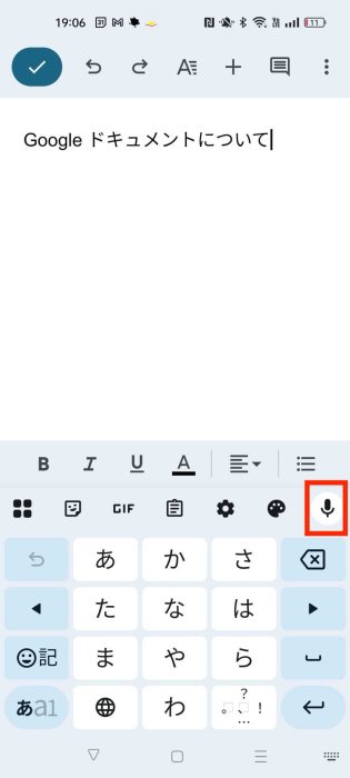キーボードを打たなくても、マイクに向かって話せば自動で文字に変換されます。